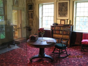 The exhibit for Ralph Waldo Emerson is essentially the original furnishings from his study. The Emerson House is directly across the street from the museum’s location. The room reflects his personality. There was even an odor of stale paper and woodworms coming from the room. The fussiness of the carpet, the numerous photographs and prints of friends and admirers on the walls and the largess of the book collection sends a message down the generations as to who he was. I do believe he read every book on the shelf. He was the ultimate intellectual and advanced the idea of individual freedoms bound in Nature. Honestly, he is too brainy for me but devotees will love the experience of peering into his private study.