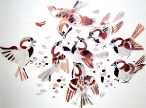 A flock of sparrows invade the chokecherry tree. How they flutter and chatter