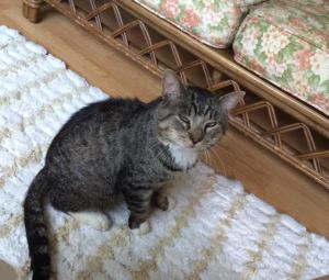 Houdini is now at Dakin Humane Society in Leverett MA. This is a compassionate adoption center in the Pioneer Valley near UMass Amherst. If anybody wants a charming and mischievous house cat, consider Houdini. He is about 10 years old. Has four white booties with a grey and black striped coat. He’s a little on the slender side still but getting better every day. He is wily, enjoys being allowed outside every day, uses the litter box, knows how to use a pet door, doesn’t scratch furniture, and not a finicky eater. He won’t initiate a tussle, but if the other cat pushes, he will take care of himself. He does not seem to like dogs and prefers a quiet, small household. He will follow you around and show the love for being in a home.