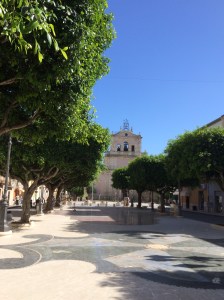 The main corso was unusual in it had trees growing along the walkways for shade and beauty. Apart from flower pots and balcony gardens, trees on the main boulevard in most cities were uncommon. There were kids drawing with chalk in the city square preparing for an art exhibit. The town municipal buildings are painted with several murals by Silvio Benedetto. He is a popular artist in Italy known for painting grand murals on public buildings in several Italian towns. Benedetto (which means the blessed) is a sculptor, illustrator, photographer, poet, dreamer, and visionary. He also has a keen eye for town planning. He came to Campobello di Licata during the 1980s and assisted with the major restoration of the downtown area. He brought a conceptual design to the squares, monuments and sculptures. The area surrounding the Chiesa Madre or Mother Church flows from one outdoor space to another. Benedetto likes curves and I tended to experience everything in a round shape. His art was so important, that he was given the entire municipal building as a canvas to paint on. Here is a photograph of his work. Clearly, the town embraced his vision and art for generations to come.