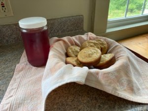 The rosewater I made in June is almost gone now. This photo shows the light lavender flower and rose petal tea muffins made using the homemade rosewater. I am hopeful the weather pattern will shift and rains will bless the soil soon!