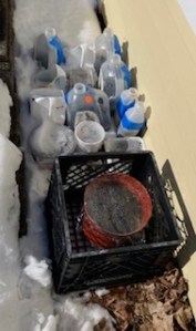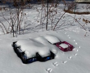 This group were put out so long ago now. Buried under the elements. Frozen in their containers. A month, it’s about a month until spring. The song birds did seem to change their tune lately. The watch is on for the red-winged black bird. When they shriek from the river, it will be a good day. Safe flights birds!