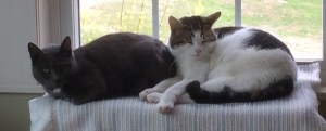 Two house cats lounge on their window perch. Serenity and slumberous is their mood. A simple life. A safe life. The hope is Stella and Tesoro will pass a lifetime in this house. Who needs a weighted blanket with these two!