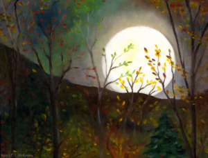 October 27 rolls in the final harvest moon for the growing season. In Native American folklore this is called the Moon When Leaves Fall. Massachusetts has had its first freeze marking the official end to the growing season. The full moon will be in earthy Taurus. Full Moons signal the culmination of events and emotions. This is a time to gather the last of the fruits and vegetables from the garden. A time to gather falling leaves laying a carpet of crimson, bittersweet orange and yellow on the cold grass. A moment to look at what is done, what is over and what is to be laid to rest. The trees, shrubs and perennials turn inward. They pull their vital energy in and sink to their roots. The fall season is at it’s most glorious.