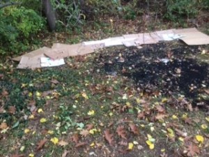 After clearing out and mowing down the living plant material, soot and ash from the nearby fire pit were spread around. The pile was getting large and needed to be disbursed. This will add some nutrients to the soil. Then, I secured as much free cardboard as I could and started building the layer on which the new garden will be planted. I wanted to cover the cardboard with horse manure as I did in the other location. But, this is about 100 square feet and a little too much for me. I’d need someone to dump the load right on the spot for spreading. In the meantime, I started raking leaves into the space. The rains are returning this week, which will soak the area nicely and set up the decomposition.